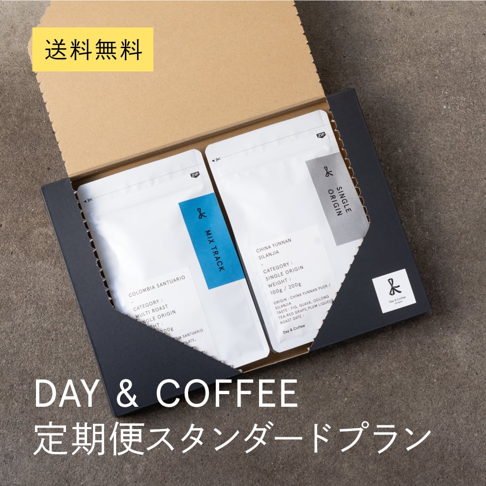 Day & Coffeeのバリスタが選び抜いた2種類のコーヒーを100gずつ計200g、毎月あなたのもとへお届けします。